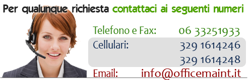 Benvenuti!La società Office Maint snc, fornisce assistenza tecnica, vendita e noleggio di macchine e accessori per ufficio.